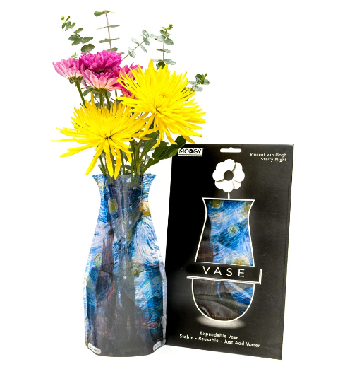 The Starry Night expandable BPA Free plastic vase is durable and stable enough to hold a single flower, or an entire bouquet. These vases are collapsible and economical, making it easy to keep a variety of colors and patterns tucked away for any occasion. It does everything a glass vase does except collect dust, chip or break